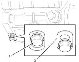 2.松開鎖緊螺釘(1)。轉(zhuǎn)動(dòng)隔套(2),以便將鎖緊螺釘(1)擰緊抵到噴油泵的軸上。逆時(shí)針方向轉(zhuǎn)動(dòng)噴油泵齒輪來消除齒隙。將鎖緊螺釘(1)擰緊至扭矩13N·m(9.6lbft)。