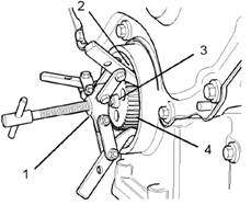 2.將適當(dāng)?shù)倪m配器(3)安裝在曲軸(4)與拉拔器(1)之間。