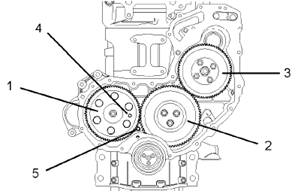 15.檢查噴油泵齒輪(3)的齒隙值。更多信息,請參閱《技術(shù)參數(shù)手冊》,“前齒輪總成”。