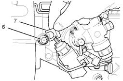 4.為了鎖定BoschEPVE噴油泵,松開鎖緊螺釘(6)并拆下墊圈(7)。將鎖緊螺釘(6)擰緊至扭矩31N·m(23lbft)。