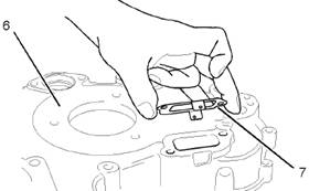 6.參見圖例190,并且檢查惰輪和齒輪(7)之間的齒隙。齒隙應為0.11mm(0.004in)至0.17mm(0.007in)。