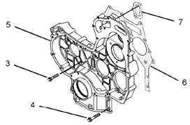 8.使用內六角螺釘(3和4),將附件驅動組件安裝到前殼體(6)的后面。擰緊六角頭螺釘至扭矩為22N·m(16lbft)。