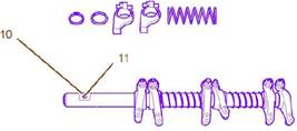 注:搖臂軸組件(1)的搖臂軸不對稱。搖臂軸的前端有一個(gè)加工平面(10)。確保加工平面(10)朝上并朝向發(fā)動(dòng)機(jī)前端。