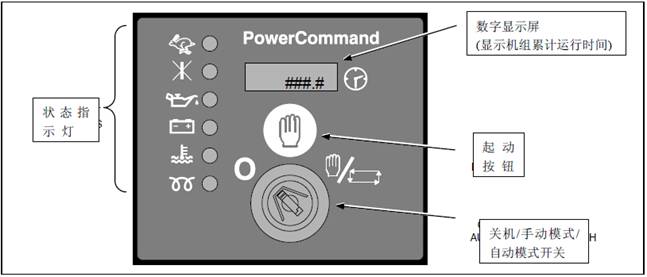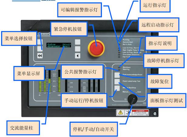 緊急停機按鈕:機組發(fā)生緊急情況時按下此按鈕,機組立即停機,在此情況下,機組不能啟動。