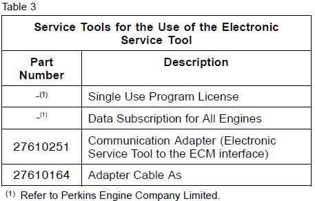 表3列出了所需的Perkins1204e-e44tta和1206e-e66ta柴油發(fā)動(dòng)機(jī)服務(wù)工具使用電子服務(wù)工具。