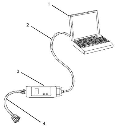 3。連接電纜(4)之間的“數(shù)據(jù)連接”結(jié)束通信適配器(3)和服務(wù)工具連接器。
