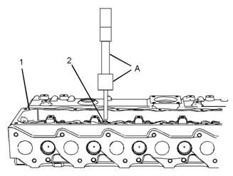 檢查氣門(mén)導(dǎo)管(2)的精加工直徑。有關(guān)更多資料,請(qǐng)參閱《技術(shù)規(guī)格》,“缸蓋-氣門(mén)”。