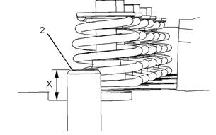 5檢查氣門(mén)導(dǎo)管(2)的凸出(X)。氣門(mén)導(dǎo)管應(yīng)比氣門(mén)彈簧凹槽高出12.7mm(0.500in)。有關(guān)更多資料,請(qǐng)參閱《技術(shù)規(guī)格》,“缸蓋氣門(mén)”。