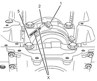 1檢查曲軸銷(xiāo)有無(wú)損壞。如果曲軸已損壞,更換曲軸。有關(guān)正確的步驟,請(qǐng)參閱《拆解和組裝》,“曲軸-拆卸”和《拆解和組裝》,“曲軸-安裝”。確保軸瓦清潔且無(wú)磨損或損壞。如有必要,更換軸瓦。