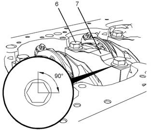 11使用清潔的發(fā)動(dòng)機(jī)機(jī)油潤滑螺栓(6)的螺紋。使用清潔的發(fā)動(dòng)機(jī)機(jī)油潤滑螺栓(6)頭的底面。
