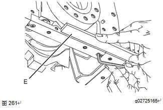 c.使用工具(E),對(duì)齊橋接件(10)的后表面與缸體的后表面。