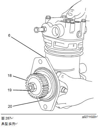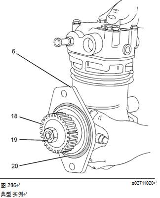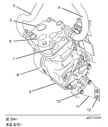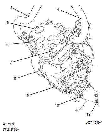 14.如果發(fā)動機在空氣壓縮機后部配備一個液壓泵,安裝該液壓泵。有關(guān)正確的步驟,請參閱OEM信息。