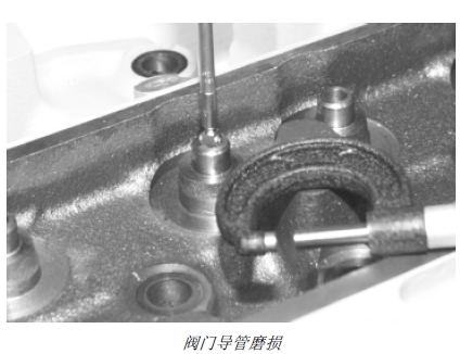 如果閥門(mén)導(dǎo)管與閥桿油隙超出磨損極限,需要更換加粗閥桿。到已認(rèn)證的維修站選配閥門(mén)導(dǎo)管,以保證閥門(mén)導(dǎo)管與閥桿間隙符合技術(shù)規(guī)格的要求。如果閥門(mén)導(dǎo)管與閥桿油隙超出磨損極限,但不足 0.20 毫米(0.008 英寸),允許對(duì)閥門(mén)導(dǎo)管滾花,然后用絞刀加工到要求的尺寸。但是,應(yīng)當(dāng)首先選擇安裝加粗閥桿。(參見(jiàn)本章后面“閥門(mén)導(dǎo)管滾花”部分。)