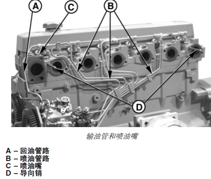 1. 將噴油嘴(C) 和噴油管(B) 作為一個總成安裝。參見相應(yīng)步驟:
