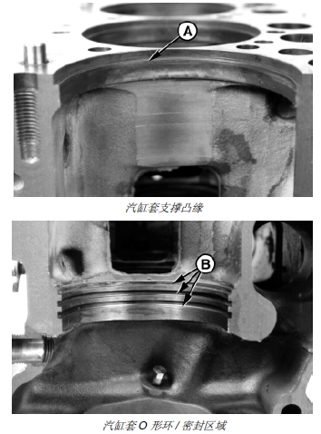 重要提示: 汽缸套支撐凸緣不得銼削過量。過度銼削可能會損壞汽缸套支撐凸緣,并引起汽缸套配合不嚴密。從汽缸體中清除所有銼屑。