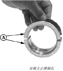 2. 將主止推軸瓦 (B) 裝在汽缸體內(nèi)帶加強(qiáng)筋的止推軸瓦座上。