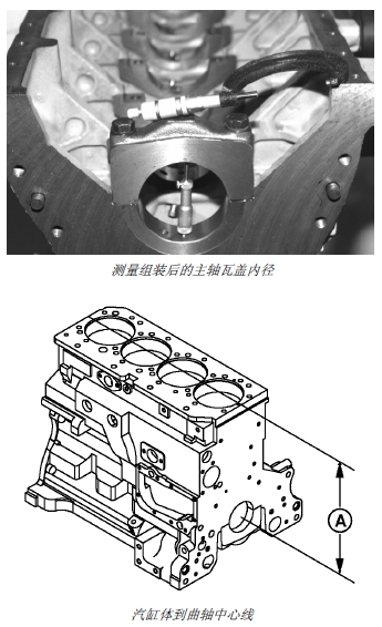 重要提示: 汽缸體鏜孔時(shí),主軸瓦孔中心線到汽缸體頂面的尺寸 (A) 將發(fā)生變化。裝裝如小于以上規(guī)定的尺寸,活塞可能會(huì)接觸缸蓋。只允許具備設(shè)備操作經(jīng)驗(yàn)的人員進(jìn)行鏜孔,以保證主軸瓦孔符合技術(shù)規(guī)格的要求。以下所列新近生產(chǎn)的汽缸體不可用維修軸瓦蓋: