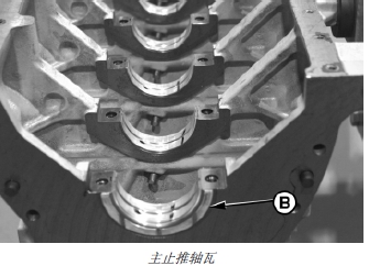 重要提示: 前后移動(dòng)曲軸使之與止推軸瓦對(duì)齊時(shí),不得撬動(dòng)止推軸瓦墊圈。