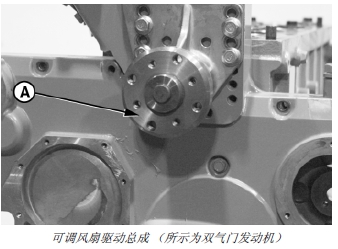 13. 拆下可調(diào)風(fēng)扇驅(qū)動(dòng)總成 (A)。(參見(jiàn)第 070 章中的“拆卸和檢查風(fēng)扇驅(qū)動(dòng)總成”部分。)