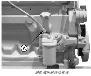 1. 排空機(jī)油并斷開渦輪增壓器的進(jìn)油管路 (A)。