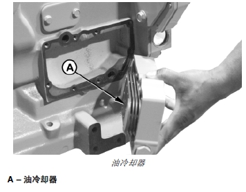 1. 檢查機(jī)油冷卻器 (A) (圖示為安裝在外殼上的冷卻器)是否有物理損傷、堵塞或造成機(jī)油與冷卻液混合的泄漏。