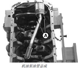 2. 松開帶帽螺釘 (A),拆下機(jī)油泵吸油管總成。