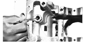 2. 在缸體內(nèi)和機(jī)油泵蓋中安裝新 O 形環(huán)(用于出油管)。將油管安裝到泵蓋和缸體上。