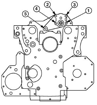 注意: 此步驟用于在未拆卸正時齒輪蓋的情況下安裝機(jī)油泵。如果從John Deere約翰迪爾強(qiáng)鹿柴油發(fā)動機(jī)上拆下正時齒輪蓋,請參見第 050 章“安裝和正時平衡軸(四缸John Deere約翰迪爾強(qiáng)鹿柴油發(fā)動機(jī))”部分。