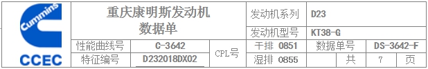 康明斯發(fā)動機排放數(shù)據(jù)單 | |
