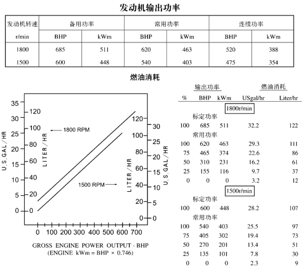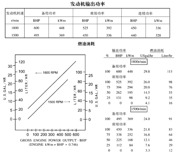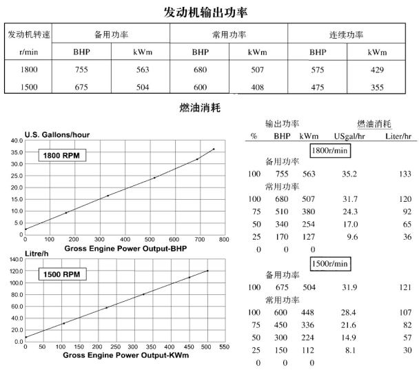 性能數(shù)據(jù) 備用功率標(biāo)定 常用功率標(biāo)定 kW(BHP)@1500r/min(50Hz) 448(600) 403(540) 燃油消耗 L/h(U.S.gal./h) 107(28.2) 97(25.5) 空燃比 24.9 25.2 排氣流量 L/h(CFM) 1489(3155) 1345(2850) 排氣溫度°C(°F) 532(990) 524(975) 排放數(shù)據(jù) 單位:均為g/BHP.hr 成分 備用功率標(biāo)定 常用功率標(biāo)定 HC 0.42 0.28 NOX 9.83 8.91 CO 2.21 1.72 PM 0.18 0.17 SO2 0.59 0.59 CO2 480 480 N2 2900 2900 O2 370 380 H2O 180 180 試驗(yàn)條件 試驗(yàn)過程中,將發(fā)動(dòng)機(jī)穩(wěn)定控制在標(biāo)定轉(zhuǎn)速(±25r/min),標(biāo)定功率(±2%)范圍內(nèi),使得壓力、溫度和排放數(shù)據(jù)穩(wěn)定。 燃油規(guī)范:硫(重量) 含量0.2%、十六烷值為42 —50的ASTM D975 No.2 柴油 燃油溫度:37℃(99°F) ±5℃(9°F) [燃油泵進(jìn)口] 進(jìn)氣溫度:25℃(77°F) ±5℃(9°F) 大氣壓力:100kPa (29.53inHg) ±3.4kPa (1inHg) 濕 度:NOX測量值按75喱H2O/lb.干空氣進(jìn)行修正 | |