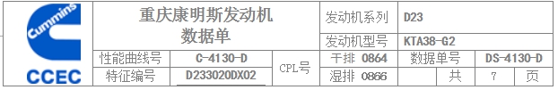 康明斯發(fā)動機排放數(shù)據(jù)單 | |