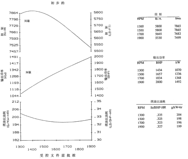 最大額定功率kW(BHP):1492(2000) @1900r/min