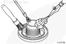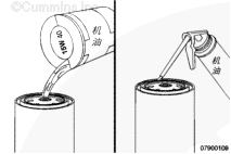 在工作溫度時(shí)(使用 15W-40 機(jī)油),如果壓降大于 172 kPa [25 psi],則表示濾清器堵塞。 識別濾清器堵塞的原因。核實(shí)滿足康明斯公司維護(hù)保養(yǎng)指南。 采用下述步驟檢查有無可能的油液污染。參考第 7 節(jié)中的步驟 007-083。 如果濾清器堵塞,更換機(jī)油和機(jī)油濾清器。 有關(guān)機(jī)油濾清器堵塞的更詳細(xì)資料,參見下述公告。參考《Cummins® 發(fā)動機(jī)機(jī)油和機(jī)油分析建議》(公告號 3810340)。 | |||||||||||||||||||||||||||||||||||||||||||