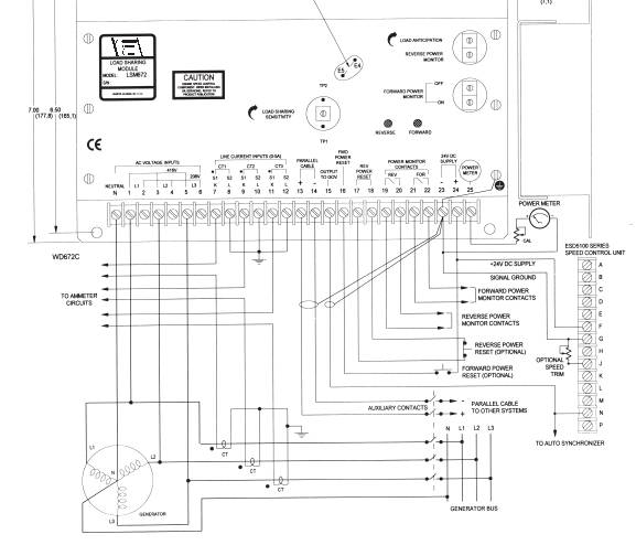 LSM672負荷分配模塊 LSM672負荷分配模塊與其它專用組件一起裝在發(fā)電機組控制屏內(nèi),該單元安裝在不防礙冷卻空氣自然流通的地方,該單元有三個大負載的電阻,每個電阻消耗的功率高達6.25瓦。 接線 電線連接見接線圖。電線的大小取決于分配模塊接線端可能有的最大電流,端子T~12的電流可高達5安,其余端子小于50毫安(繼電器觸頭除外,該處電流高達10安) 端子N是“wye”組合發(fā)電機組的三相電壓的中性連接點。 端字1~6接三相輸入電壓,根據(jù)發(fā)電機的電壓,選擇其中三個適合的端子,見說明書第2頁。 警告:端子N和1~6有高壓,操作(運轉(zhuǎn))時端子蓋必須蓋好! 端子7~12接來自5安培變壓器的三相輸入電壓。儀表板(操縱板)交流器(CT)的伏安足夠大,可進行串聯(lián)連接。負荷分配模塊的交流器(CT)的負載為每相6.25VA,這是增加控制屏設(shè)備和交流器線路的負載額。注意,一般交流器接到端子8、10、12時要經(jīng)總工程師批準。發(fā)電機并網(wǎng)|發(fā)電機手動并機控制|發(fā)電機并機控制資料|發(fā)電機并網(wǎng)并機控制技術(shù)|發(fā)電機手動并網(wǎng)并機控制維修服務商| 端子13和14是并車電纜連接端子,能把所有負載分配模塊連在一起,必須注意它們的極性,如果這些電纜長度超過1米,則必須屏蔽,且屏蔽要在端子23處接地。所用的繼電器接觸器必須適合最低電流值,小于1毫安(干接觸時)。 端子15是負荷分配模塊的輸出端接到調(diào)速器的端子,如果連接電纜長度超過1米,則必須屏蔽,且屏蔽在端子23處接地。 端子16為正向功率復位(FORWARD POWER RESET)端子,把一個常開的按鈕開關(guān)接到一個位于調(diào)速器上的+10伏的直流電源,當開關(guān)接零時,會使正向功率繼電器自動復位到斷開狀態(tài)(OFF)。把端子16接到電池負極可打開監(jiān)測器。正向功率監(jiān)測器有程序控制開關(guān)點通到端子16。在端子16與電池負極(端子23)之間連接一個1兆歐的電阻,可把原100%開(ON)40%關(guān)(OFF)的設(shè)定轉(zhuǎn)換到85%開(ON)和5%關(guān)(OFF)的設(shè)定。若要更多的程序設(shè)定請咨詢GAC公司獲取幫助。 端子17和18是逆功率復位(REVERSE POWER RESET)按鈕開關(guān)的端子,兩端子間出廠時就有一條跨接線,用于自動復位。自動復位會使只有在逆功率大于其設(shè)定值時內(nèi)置繼電器才保持通電。 逆功率繼電器可以改為手動復位,這要通過對端子17、18的外開關(guān)來進行改裝,即在位于電路板上的端子E4和E5之間焊裝一條導線即可, E4和E5在單元里,開蓋即見。參閱圖2查找E4和E5位置。 用一個常閉的按鈕開關(guān)接于端子17和18之間,代替原有的跨接線,當開關(guān)打開時,逆功率繼電器將復位到斷開狀態(tài)。 端子19和20是逆功率繼電器的輸出端子,接觸器常開,額定電流為10安培(有指示燈)。 端子21和22是正向功率繼電器的輸出端子,接觸口常開,額定電流為10安培(有指示燈)。 端子23是電池負極,接到調(diào)速器上的接地參考端子上,不要直接接到電池負極上,否則,地上回路即形成。 端子24接到24伏的直流電源的負極上。 端子25提供一個與發(fā)電機組的輸出功率成正比例的直流電壓,接地參考點為端子23。更進一步信息見功率輸出信號部分。 預并車檢查 負荷分配靈敏度調(diào)節(jié)——全順時針位置 負荷預期調(diào)節(jié)——全反時針位置過1/4圈 調(diào)速器速度設(shè)定點——調(diào)節(jié)所需的速度 交流器(CT)調(diào)整檢查需要進行直流電壓測量 測量測試頭(TP1和TP2),觀察儀表的極性,下測試頭TP1為正,其電壓與整功率因數(shù)負荷(unity P.F.load)直接成比例,可望測得0~7.5伏的直流電壓,這取決于負荷、負荷分配靈敏度的調(diào)節(jié)及CT的比率。 在發(fā)電機帶有負荷時,檢查交流器(CT)的相位,瞬時的、按順序的短接每一個CT,每次僅一個(在端子7-8、9-10、11-12帶絕緣鉛時做),電壓讀數(shù)會減少1/3。如果沒有,則很有可能表示CT不合適或相位不對。相位糾正必須在發(fā)電機停止時才進行。 警告:發(fā)電機正在運轉(zhuǎn)時不要拆交流器的接線!有高壓存在!在所有接線完成后,確保接線柱的外蓋要蓋好! 調(diào)節(jié) 讓發(fā)電機與其它機組并車,系統(tǒng)中沒有負載,通過調(diào)速器調(diào)整每臺機組的速度至個機組的功率表示為零,以及有合適的頻率(50,60或400HZ)。而且調(diào)節(jié)發(fā)電機的交流電壓調(diào)節(jié)器,使其循環(huán)電流為零。這樣就可以把負荷加到系統(tǒng)去調(diào)整J。 負載分配 所有發(fā)電機組應按比例地分配系統(tǒng)中的負荷,負荷較低的機組要調(diào)高。反時針調(diào)節(jié)負荷靈敏度旋鈕(LOAD SHARING SENSITIVITY)即可增加負荷。 負荷預定 負荷預定(期)已在出廠前調(diào)好,在全反時針過1/4圈的位置。為了改善過渡反應,順時針慢慢向前調(diào)整旋鈕(LOAD ANTICIPATION)(在機組并車時進行),過渡反應的改善可通過負荷的改變觀察得到。順時針調(diào)節(jié)旋鈕過快時可引起機組不穩(wěn)定,建議緩慢地調(diào)節(jié)。 降速 在某些情形下可能要求降速運行,為了達到降速,從端子13、14上拆去并車電纜,在13和14之間連一條跨接線,順時針調(diào)節(jié)負載分配靈敏度旋鈕(LOAD SHARING SENSITIVITY)即可增加降速百分比,或者在端子13和14接一個100K的可變電阻,可以得到5%的降速。進一步降速操作可參看《功率控制公