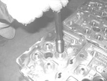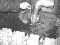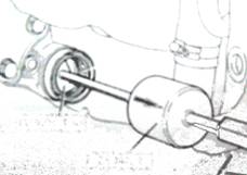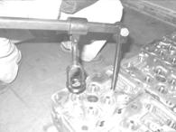 ● 維修時禁止吸煙。 ● 為避免嚴重灼傷,不要觸碰任何高溫金屬表面。 ● 關閉點火開關,操作規(guī)程規(guī)定的除外。 ● 發(fā)動機須在通風良好的區(qū)域工作。 ● 避免在發(fā)動機工作時拆卸零部件。 ● 操作時必須戴安全防護眼鏡。 二. 發(fā)動機專用維修工具 1. 連接板定位器(WPT001),如圖1 配套使用工具:無 用途:給連接板做定位。 操作方法:如圖2 把連接板定位器(WPT001)插入圖中箭頭所指處,進行連接板的定位。 圖1 連接板定位器 圖2 2. 噴油器拆卸器(WPT002),如圖3 配套使用工具:轉(zhuǎn)換手柄(WPT003) 用途:拆卸噴油器。 操作方法:如圖4 把轉(zhuǎn)換手柄(WPT003)的螺紋接頭旋入噴油器拆卸器(WPT002)的螺紋孔中,然后把噴油器拆卸器(WPT002)套在噴油器上,手握轉(zhuǎn)換手柄(WPT003)向上提出噴油器。 圖3 噴油器拆卸器 圖4 3. 轉(zhuǎn)換手柄(WPT003),如圖17 配套使用工具:可配合噴油器拆卸器(WPT002)使用。 用途:可做為加長手柄和慣性錘使用。 操作方法:如圖4,或18 做為加長手柄的操作方法見圖4, 做為慣性錘使用,見圖18 圖17轉(zhuǎn)換手柄(WPT003) 圖18 4. 活塞安裝錐套(WPT004),如圖5 配套使用工具:無 用途:固定活塞環(huán),以安裝活塞,保護活塞不受損壞。 操作方法:如圖6 先把活塞安裝錐套(WPT004)套在活塞和活塞環(huán)上,將活塞對準氣缸后輕輕向下敲擊活塞,直至裝入。 圖5活塞安裝錐套 圖6 5. 液壓挺柱安裝器(WPT005),如圖7 配套使用工具:無 用途:拆裝液壓挺柱。 操作方法:如圖7和8 手握壓挺柱安裝器(WPT005)的手柄,柴油發(fā)動機,柴油發(fā)動機專用維修工具,柴油發(fā)動機專用維修工具資料,柴油發(fā)動機專用維修工具服務商,且大拇指向下按液壓挺柱安裝器(WPT005)的壓頭(圖7中圓圈所指處),然后把液壓挺柱安裝器(WPT005)的下端插入液壓挺柱中(圖8中圓圈所指處),松開大拇指,即可開始進行安裝。 圖7液壓挺柱安裝器 圖8 6. 前油封安裝器(WPT006),如圖9 配套使用工具:無 用途:安裝發(fā)動機曲軸前油封。 操作方法:如圖10 將專用工具-前油封安裝器(WPT006)套上油封,然后一起裝在曲軸前端(用擰上配套螺栓的方法進行安裝),通過擰動前油封安裝器(WPT006)自身的螺母,把前油封壓入安裝到位。 圖9前油封安裝器 7. 后油封安裝器(WPT007),如圖11 配套使用工具:無 用途:安裝發(fā)動機曲軸后油封。 操作方法:如圖12 將專用工具-后油封安裝器(WPT007)套上油封,然后一起裝在曲軸后端(用擰上配套螺栓的方法進行安裝),通過擰動后油封安裝器(WPT007)自身的螺母,把后油封壓入安裝到位。 圖11后油封安裝器 8. 氣缸套拆卸器(WPT008),如圖13 配套使用工具:無 用途:把缸套拔出汽缸。 操作方法:如圖14 取出汽缸兩側的M16*2.0的兩根螺桿,換上氣缸套拆卸器(WPT008)配套的兩根帶銷孔的光桿,并旋入被取出的兩根螺桿的位置。然后把氣缸套拆卸器(WPT008)的支架架在兩根帶銷孔的光桿上,把拔頭在另一端套在缸套上,在兩根帶銷孔的光桿上插上銷釘。最后通過擰動氣缸套拆卸器(WPT008)上的螺母的方式,拔出缸套。 圖13氣缸套拆卸器 9. 氣缸套安裝器(WPT009) ,如圖21 配套使用工具:無 用途:把缸套壓入汽缸。 操作方法:如圖22 換上氣缸套安裝器(WPT009)配套的兩根帶銷孔的光桿(同氣缸套拆卸器配套的兩根光桿),并旋入汽缸側的兩個M16*2.0螺孔中。然后把氣缸套安裝器(WPT009)的壓頭壓在缸套上,并把氣缸套安裝器(WPT009)的主體支架架在兩根帶銷孔的光桿上插上銷釘。最后用手柄搖動液壓千斤頂,把缸套壓入汽缸。 注意:當液壓千斤頂行程不夠時,可用手下壓液壓千斤頂把其行程重新歸零,同時把銷孔光桿上的銷釘下移,這樣可以彌補液壓千斤頂?shù)男谐滩粔?,同時又能繼續(xù)下壓缸套到合理的位置。 圖21氣缸套安裝器 10. 氣門油封安裝器(WPT010),如圖15 配套使用工具:無 用途:安裝發(fā)動機氣門油封。 操作方法:如圖16 利用氣門油封安裝器(WPT010)在氣門導管上安裝氣門油封(此安裝工具的導桿為可拆卸式)。 注意:安裝不當會引起泄漏,氣門油封不能重復使用。 圖15氣門油封安裝器 圖16 11. 氣門彈簧壓縮器(WPT011),如圖19 配套使用工具:無 用途:壓氣門彈簧,安裝氣門鎖夾。 操作方法:如圖20 把氣門彈簧壓縮器(WPT011)螺紋連接端旋入圖中箭頭所指處,然后把氣門彈簧壓縮器(WPT011)的壓頭壓在氣門彈簧上,手握住手柄,并下壓,直到手柄桿為水平狀態(tài),此時方可安裝氣門鎖夾。 圖19氣門彈簧壓縮器(WPT011) 圖20 12. 渦輪增壓機油接口拆裝器(WPT012),如圖23 配套使用工具:1/2″棘輪扳手 用途:拆裝渦輪增壓機油接口的螺栓。 操作方法:如圖24 把工具(WPT012)套在渦輪增壓機油接口螺栓上,配合使用工具1/2″棘輪扳手,進行拆裝。 圖23渦輪增壓機油接口拆裝器 圖24 13. 銅錘(WPT013),如圖25 配套使用工具:無 用途:敲擊鈑金件和敲擊不希望被敲擊變形、凹陷、破裂的部件。。 操作方法: 握住銅錘(WPT013)的手柄,用錘頭敲擊希望被敲擊的部件或部位。 圖25銅錘(WPT013) 14. 卡簧鉗(WPT014),如圖26 配套使用工具:無 用途:拆裝卡簧。 操作方法:如圖27 用卡簧鉗(WPT014)鉗嘴的凹槽鉗住卡簧,用力握壓卡簧鉗(WPT014)手柄,然后即可進行卡簧的拆裝。 圖26卡簧鉗 圖27 本部分內(nèi)容意在介紹專用工具的使用,具體裝配要求請參閱配套維修手冊!