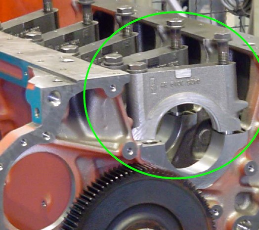 主軸承蓋裝反時(shí),A處與B處干涉,無法裝配,安裝主軸承蓋要注意編號(hào)。