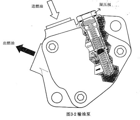 輸油泵由一對內(nèi)嚙合的齒輪構(gòu)成,泵內(nèi)部裝有限壓閥。低壓油路中的壓力穩(wěn)定對柴油機的功率輸出是至關重要的。發(fā)動機的功率不足時首先就應檢查低壓油路的壓力。另外回油閥閥芯銹蝕或彈簧失效是造成柴油機不能啟動的重要原因之一。