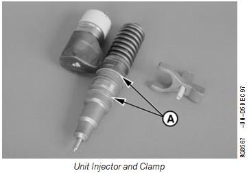 1. The electronic unit injector’s two external O-rings (A) must be replaced whenever injector is removed.