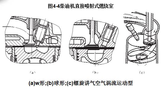 直接噴射式燃燒室常見的結(jié)構(gòu)形式(如圖4 -4所示)是由凹形活塞頂與汽缸蓋底面所包圍的空間組成,也稱統(tǒng)一式燃燒室。幾乎全部燃燒室容積都在活塞頂面上,按活塞頂面形狀不同,又可分為ω形、球形等。