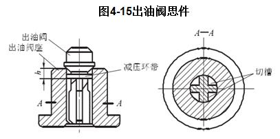 出油閥偶件是為在噴油結(jié)束后使高壓油管卸載,以及在每個(gè)噴油循環(huán)內(nèi)把高壓及低壓油路分開而設(shè)置的,其結(jié)構(gòu)如圖4-15所示。出油閥上部的圓錐面為閥的軸向密封錐面;中部的圓柱面為減壓環(huán)帶,與閥座內(nèi)孔精密配合,是閥的徑向滑動(dòng)密封面;閥的尾部同閥座內(nèi)孔為滑動(dòng)配合,出油閥偶件位于柱塞套上面,二者接觸平面要求嚴(yán)密配合。壓緊座以規(guī)定力矩?cái)Q入后,通過高壓密封墊圈將閥座與柱塞套壓緊,同時(shí)使出油閥彈簧將出油閥壓在閥座上。
