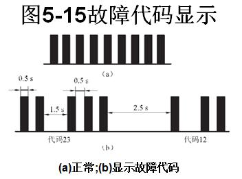 制造廠在設(shè)計(jì)自診斷系統(tǒng)時,預(yù)先根據(jù)不同的故障部位信號的輸入、輸出電平信號,將故障代碼編制在程序中。電控單元一旦發(fā)生故障,立即按故障信號對號入座,并編上預(yù)定的故障代碼。