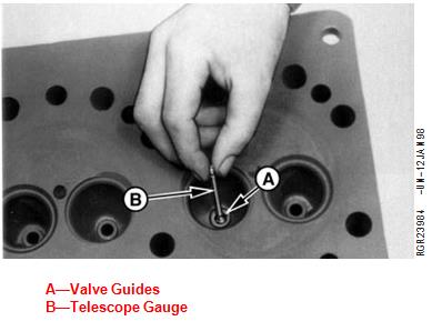 測量約翰迪爾氣門導(dǎo)管使用伸縮規(guī)(B)和千分尺測量氣門導(dǎo)管(A)的磨損情況。