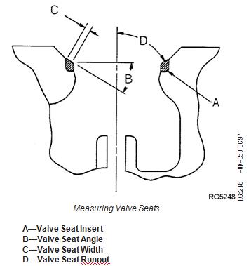 A—Valve Seat Insert B—Valve Seat Angle C—Valve Seat Width D—Valve Seat Runout