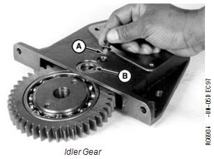 10. If removed, install idler gear into idler housing. Install cap screw with seal (A) to hold idler gear in place.