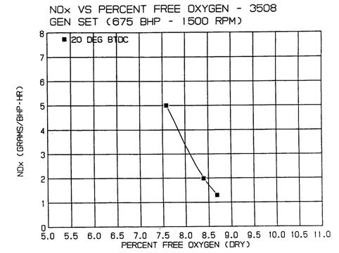 卡特CAT發(fā)動(dòng)機(jī)3508通用設(shè)置氧氣排放圖的狀況在穩(wěn)定工作狀態(tài)下所獲得的讀數(shù)
