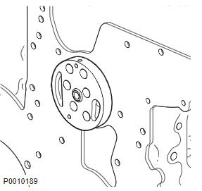 12 安裝不帶減振器的曲軸齒輪。對準(zhǔn)標(biāo)記與沃爾沃發(fā)動機(jī)正時盤中的孔。在螺栓下面房子適當(dāng)?shù)母羝米鳒p振器替換件。
