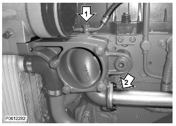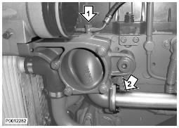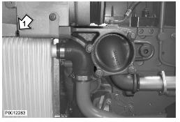 11 安裝恒溫器蓋。將螺栓(1)安裝到增壓空氣冷卻器上。