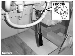 7 提起泵??赡苄枰葘⒈眠B接接頭拆下(取決于發(fā)動機版本)。