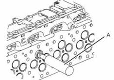 1. 使用工具(A)和錘子從氣缸蓋上拆下氣門導管。
