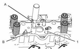 2. 使用工具(A)和工具(B)將氣門導管(1)安裝到氣缸蓋中。